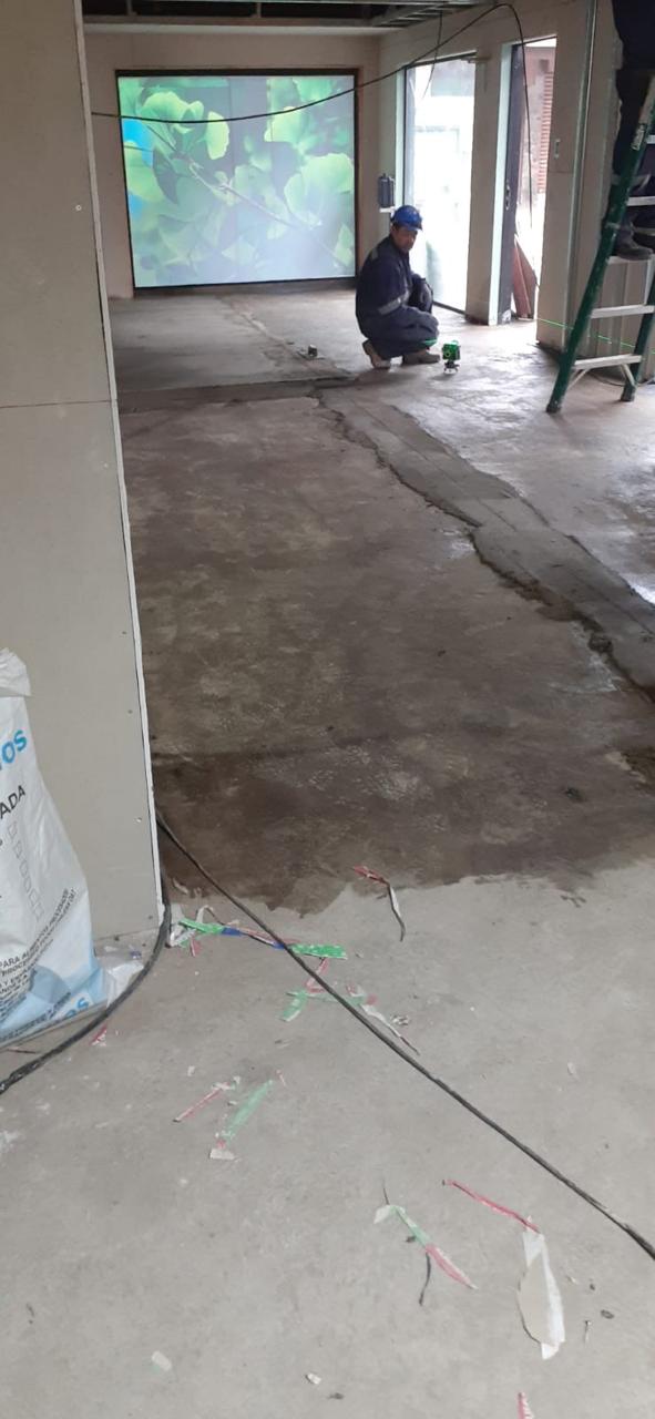 Si el piso presenta sectores más bajos, lo correcto es regularizar la superficie con un nivelador de piso.